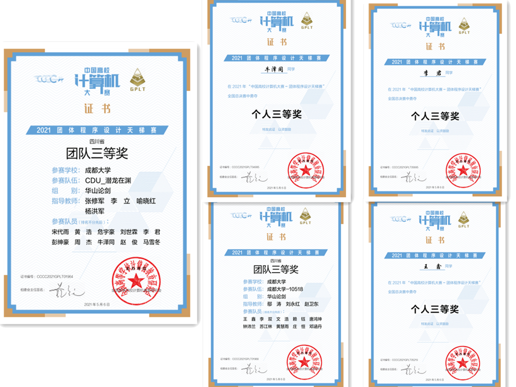 本网消息(图文/张修军)近日,第六届“中国高校计算机大赛-团体程序设计天梯赛”圆满落幕。我校计算机学院组织了四支队伍共40名同学参赛,取得“华山论剑”组个人赛全国三等奖3项,团队省级三等奖2项的好成绩,成绩较去年有较大突破。