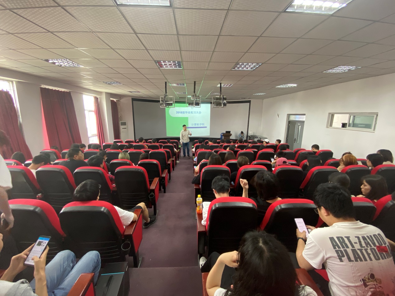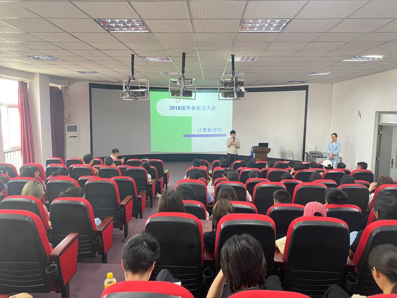 为落实计算机学院2018级软件工程、数字媒体技术、计算机科学与技术、网络工程、物联网工程、信息与计算科学等专业实习工作的顺利进行,学院于5月12日下午15:00点在学院10501报告厅分批组织召开了各专业毕业实习的动员大会。会议由学院实验中心主任芶小珊主持,软件工程与大数据系主任曾宇、计算机工程与应用系主任韩祺祎、学工和实验室相关老师参加。