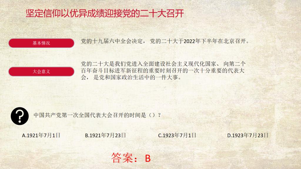 第一项,坚定信仰以优异成绩迎接党的二十大召开。主持人讲述自新民主主义时期以来,不同时期党如何领导广大青年参与社会主义建设。特别是“十八大”后,从严治党的战略部署。党的二十大是我们党进入全面建设社会主义现代化国家、 向第二个百年奋斗目标进军新征程的重要时刻召开的一次十分重要的代表大会, 是党和国家政治生活中的一件大事。同学们集中学习,交流学习心得,分享学习感悟。同时采取知识竞赛的方式巩固所学知识。
