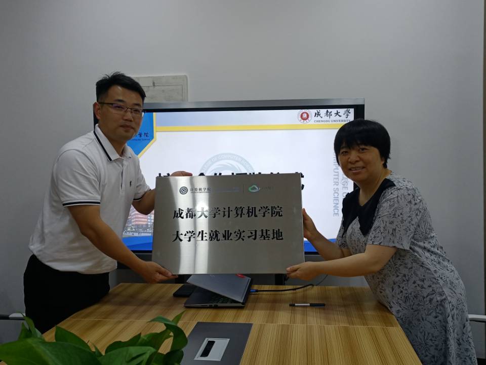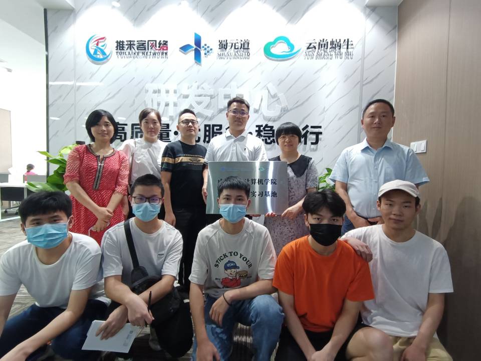 为进一步促进学生就业,加强校企深度合作,深化校友联系和沟通,凝聚校友、服务校友、促进校友与母校的共赢发展等,计算机学院于2022年6月13日下午2点由学院党委书记肖小琼带队,党委副书记孟源以及校友工作负责老师、就业辅导员、19级部分班主任和学生代表走访校友企业-成都云尚蜗牛科技有限公司,举行校企合作签约授牌仪式暨校友工作座谈会。