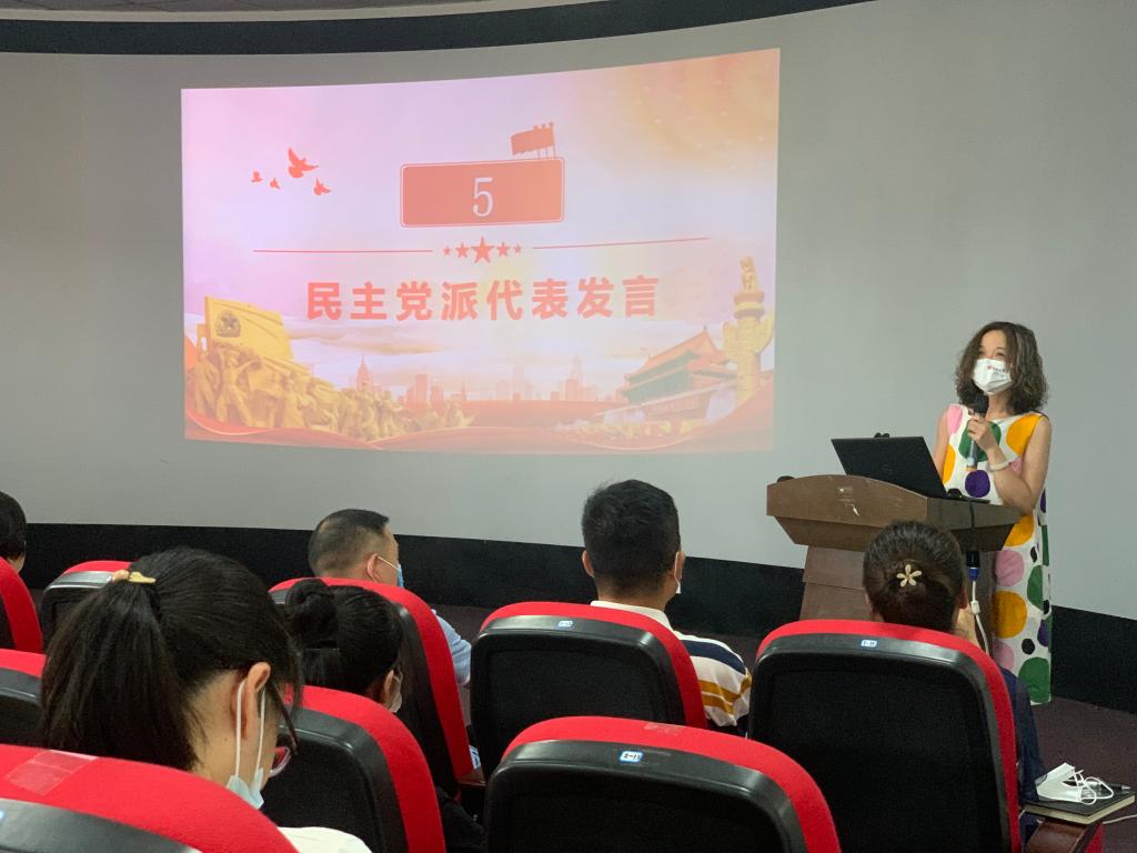 活动上,民主党派代表冯潇同志发言表示民主党派教师将立足本职岗位,认真履职尽责,主动担当作为,积极建言献策,为学校的发展进步奉献力量,和党同心同德,荣辱与共。