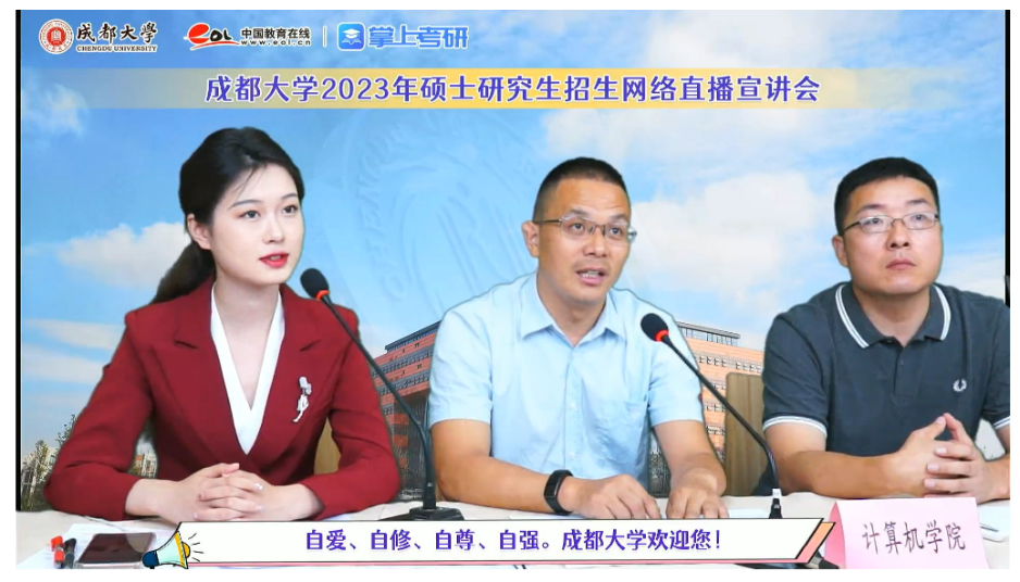 在计算机学院专场咨询会上,计算机学院高朝邦院长带领学院招生宣传团队从学院概况、研究方向和师资状况、研究生培养、校园生活和奖助情况全方位解读研究生项目。在答疑环节,针对同学们提出的关于报考和研究方向的问题,高朝邦院长耐心解答,获得一致好评。参加本次计算机学院专场直播的考生人数众多,线上峰值人数达到1800余人,现场交流热烈,气氛愉快。